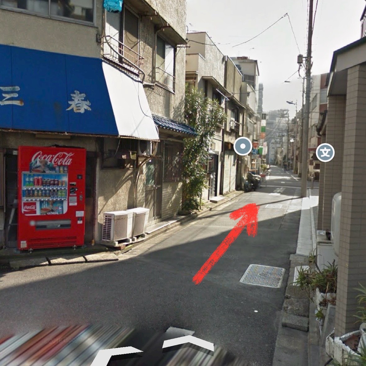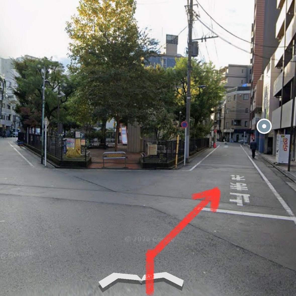 ②出口2から出たら、そのまま右方向へ進みます。