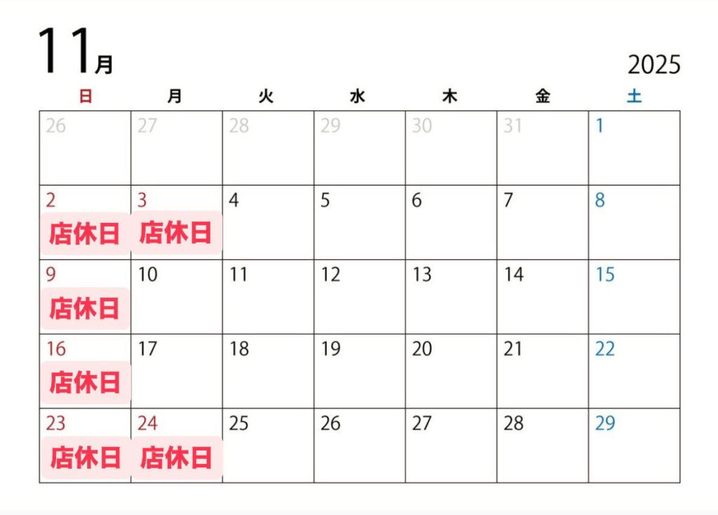 カルノリブログ2025/10/2211月店休日のお知らせ
