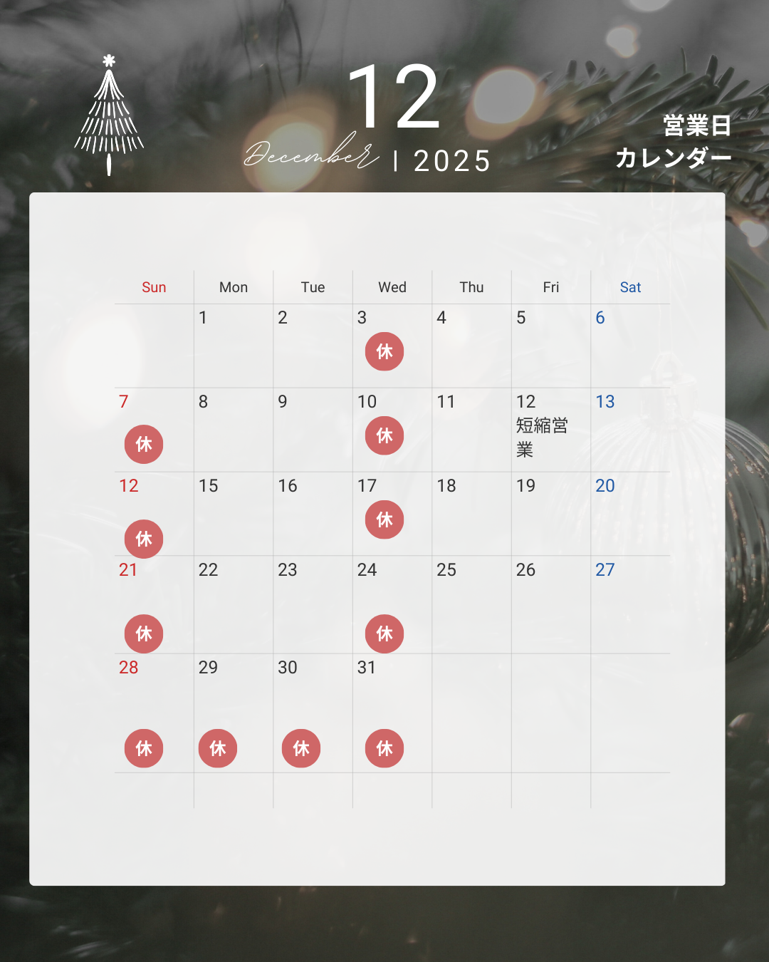 12月12日は短縮営業になります。