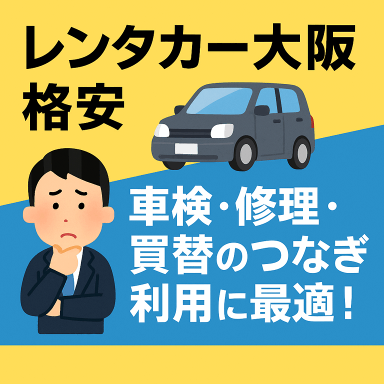 「レンタカー大阪 安い」「レンタカー ガッツ」「レンタカー 格安」と検索している方の中には、車検・修理・買い替えの間だけ一時的に車を使いたいという方も多いのではないでしょうか。