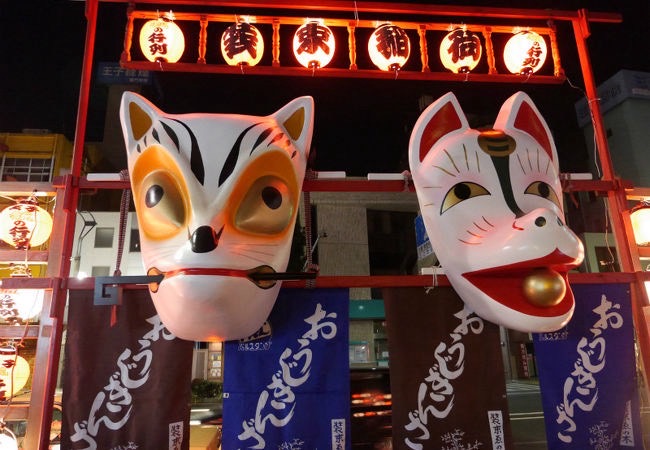 江戸時代の言い伝えをもとにした行事で、参加者が狐の化粧や面をつけ、提灯を持って王子の街を練り歩きます。