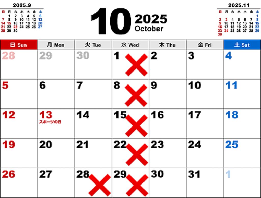 カルノリブログ2025/09/30【大阪本店】10月の営業日のご案内