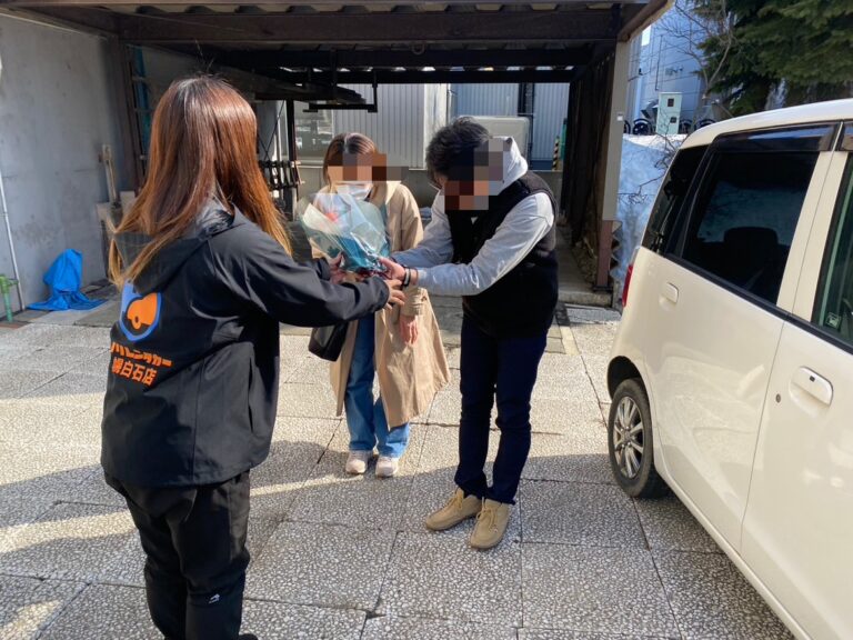 3月15日オープン初日、記念すべき第一号のお客様に花束を贈呈させていただきました。