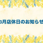 カルノリブログ2026/02/213月店休日のお知らせ