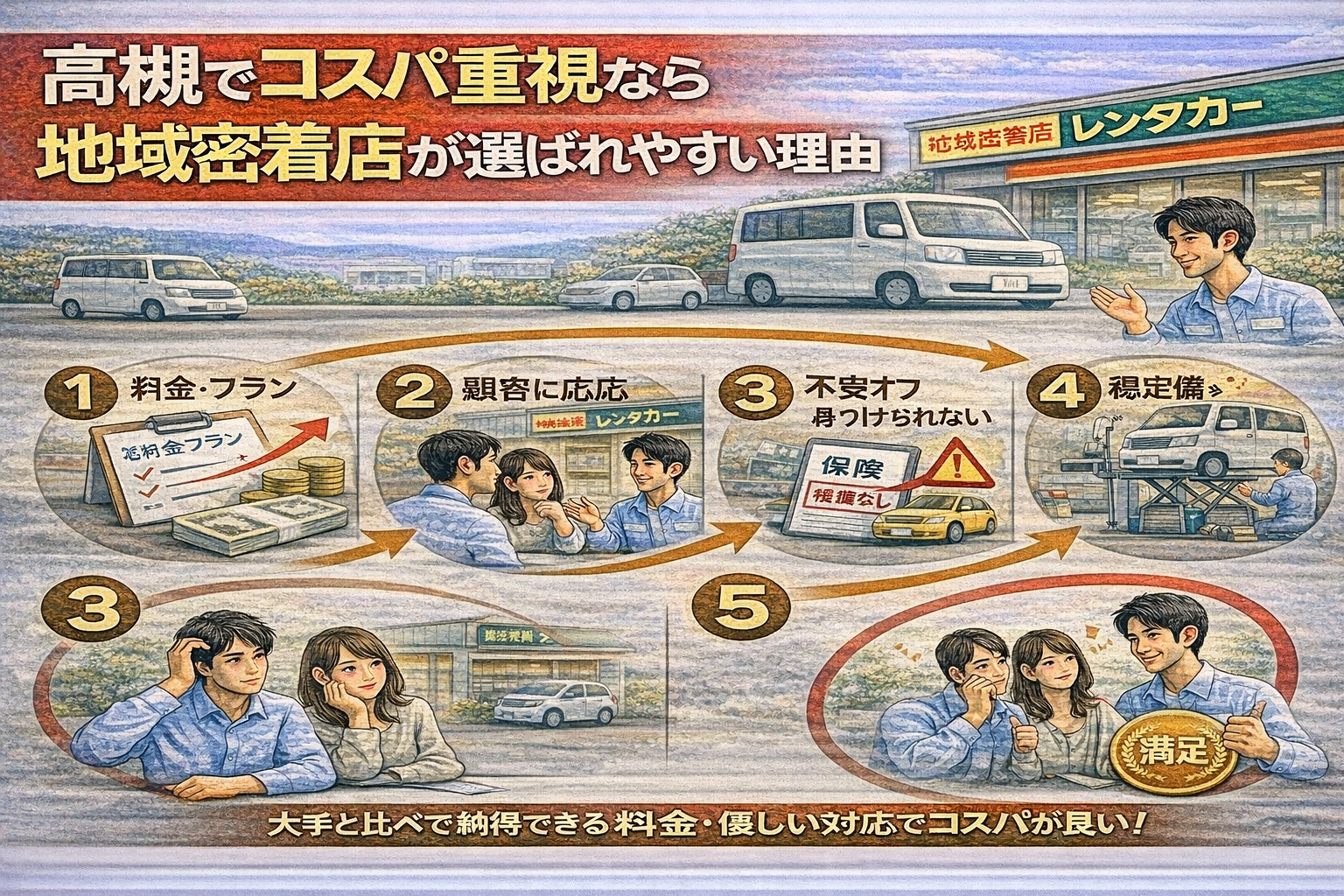 また、利用目的に合わせた柔軟な対応をしてくれるため、「結果的に無駄な出費がなかった」と感じるケースが多くなります。派手な安さではなく、納得できる総額と使いやすさが、コスパの良さにつながっています。