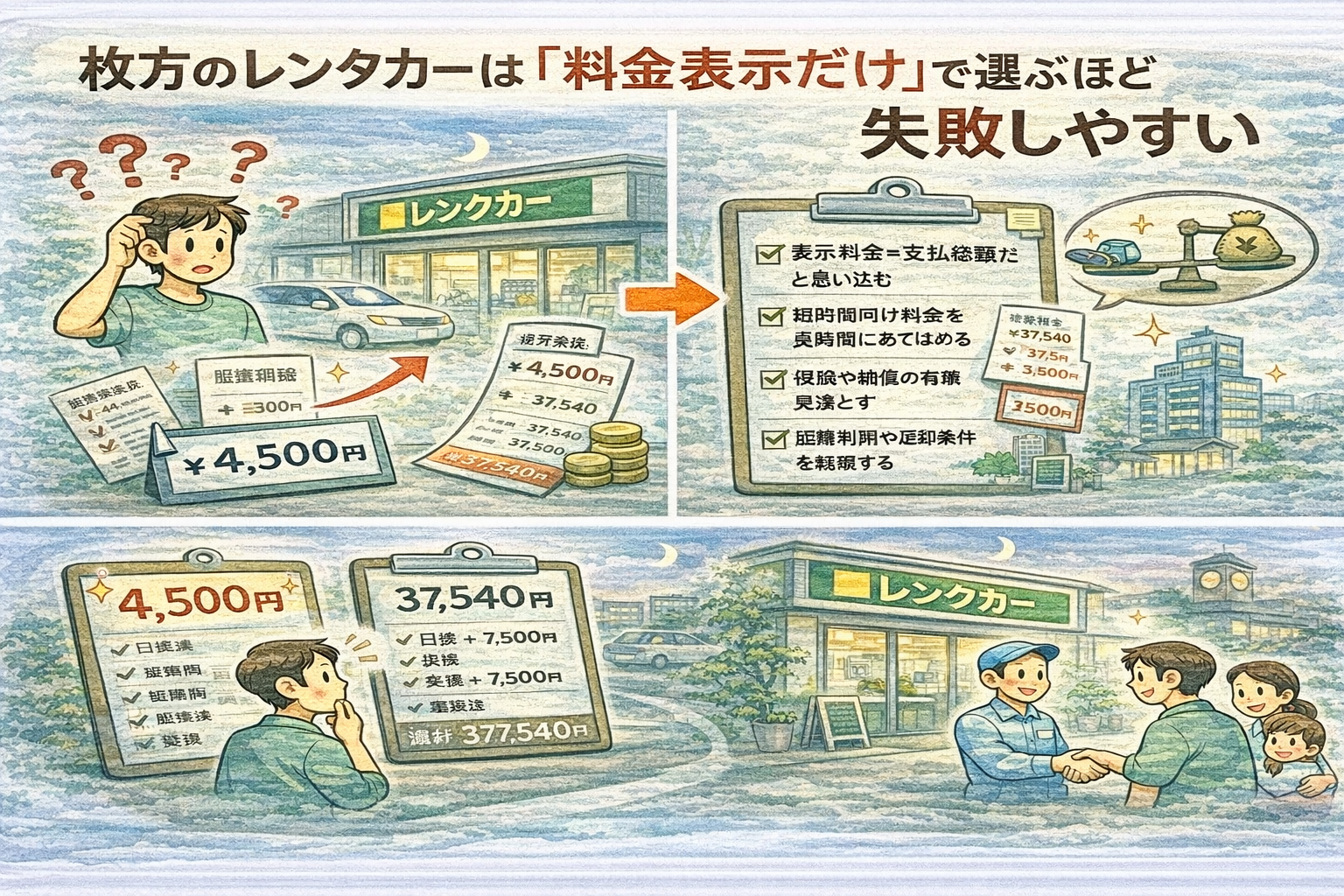 枚方でレンタカーを選ぶ際は、料金の数字だけでなく、その背景にある条件まで確認することで、後悔のない選択につながります。