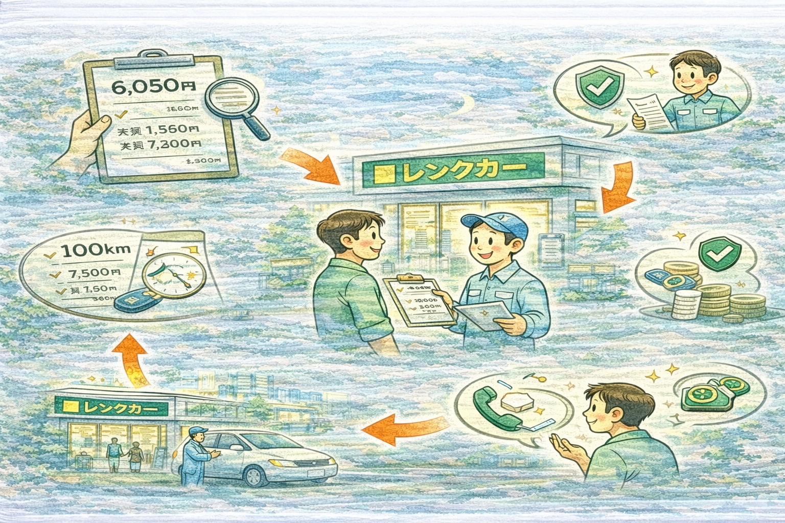 多くの人が誤解しやすいのは、表示料金がそのまま支払総額だと思い込んでしまう点です。実際には、保険や補償、オプションが別料金になっていることも少なくありません。