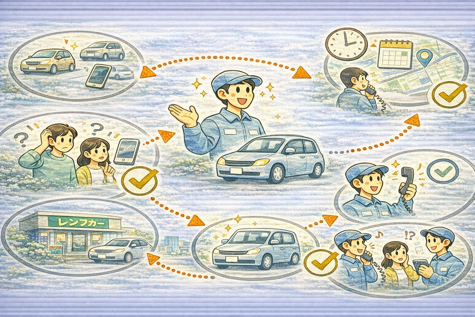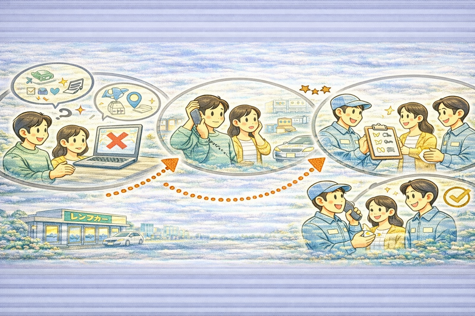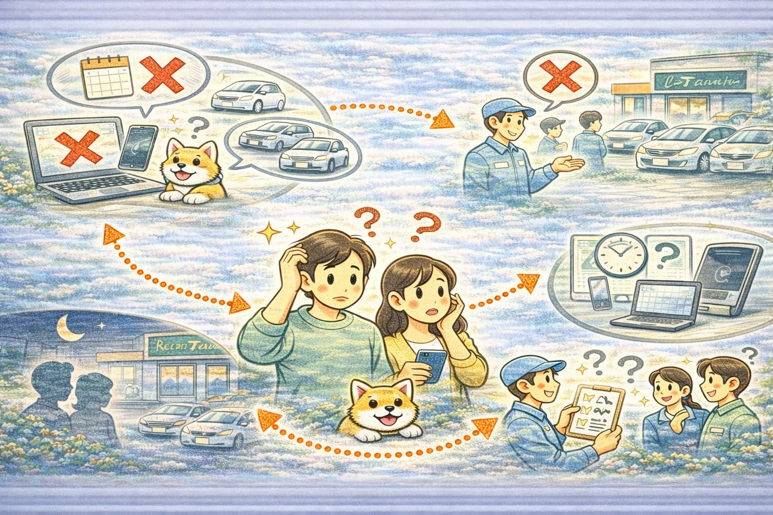 また、車種や利用時間を固定したまま探し続けることで、選択肢を自ら狭めてしまっていることもあります。特に大手チェーンだけに絞ると、当日対応の余地が少なくなりやすい傾向があります。