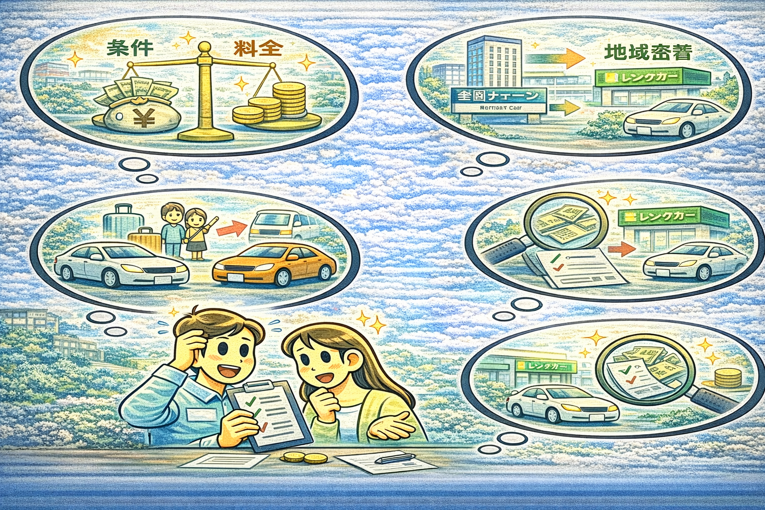 失敗を避けるためには、料金より先に「どう使うか」「どの条件が重要か」を整理することが大切です。大手と地域密着店にはそれぞれ役割があり、目的によって向き不向きが分かれます。