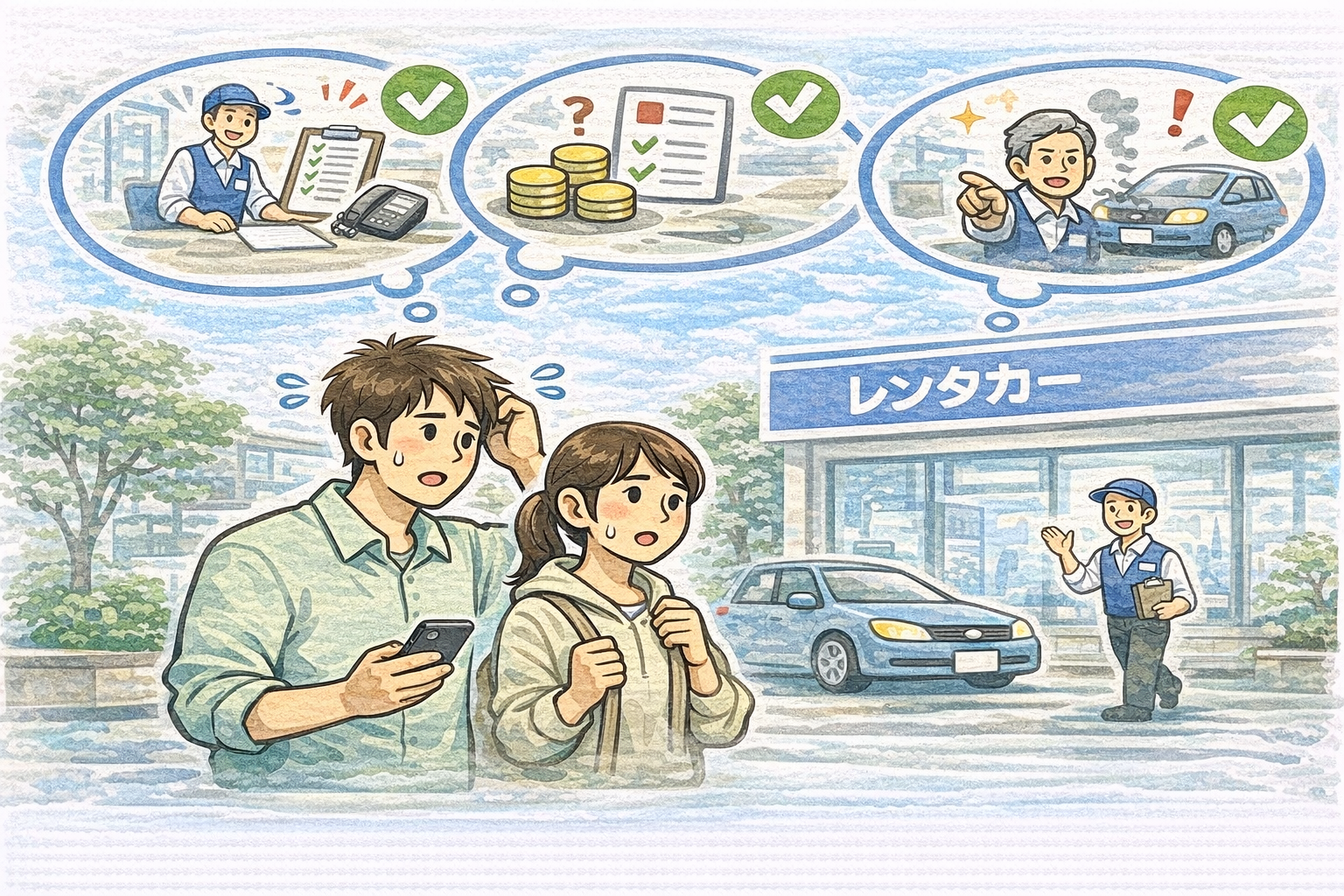 高槻でレンタカーを初めて借りようとしている方の多くが、「手続きが難しそう」「変な料金を取られないか不安」「ちゃんと返せるか心配」と感じています。