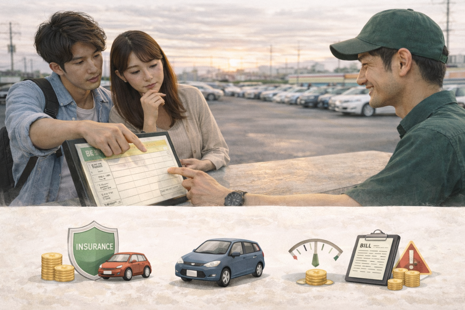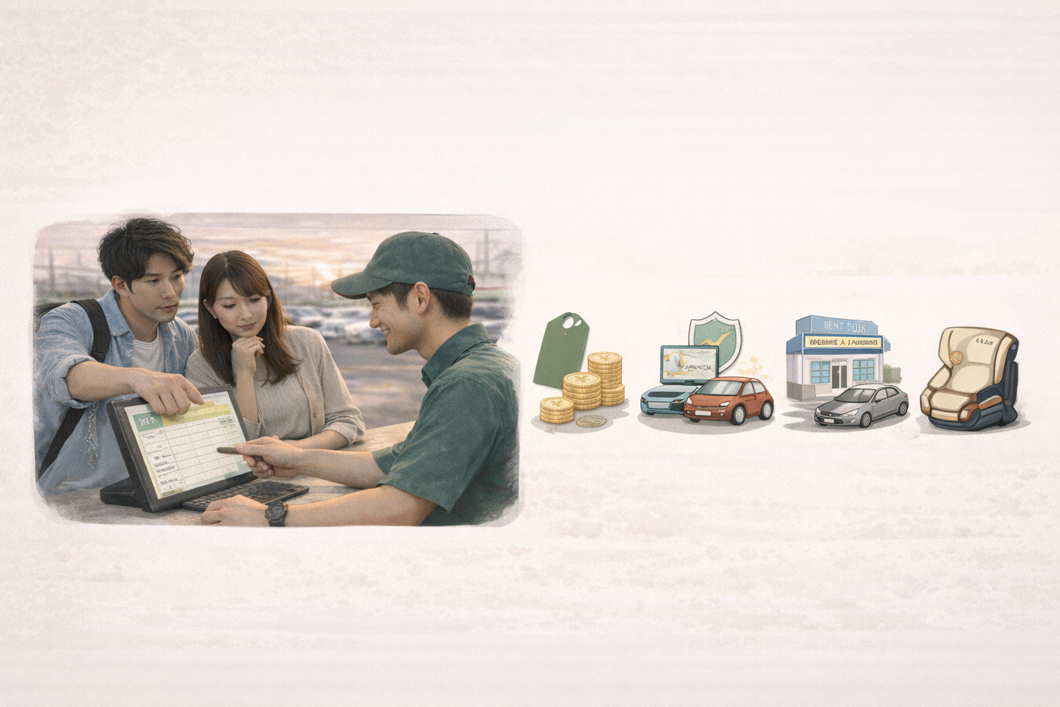 たとえば、基本料金は安くても補償が別料金だったり、返却時間に制限があったりするケースもあります。まずは比較軸を揃えることがスタートです。