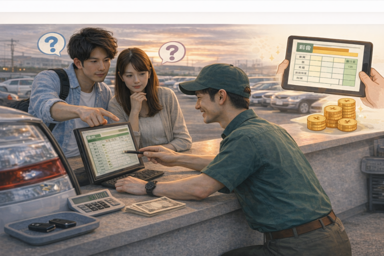 たとえば、基本料金は安くても補償が別料金だったり、返却時間に制限があったりするケースもあります。まずは比較軸を揃えることがスタートです。