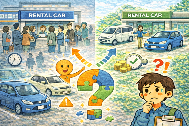 枚方でレンタカーを探していると、駅前の有名店ばかりが目に入ります。しかし、週末や連休は予約が埋まりやすく、「空いていない」「思ったより高い」と感じる人も少なくありません。