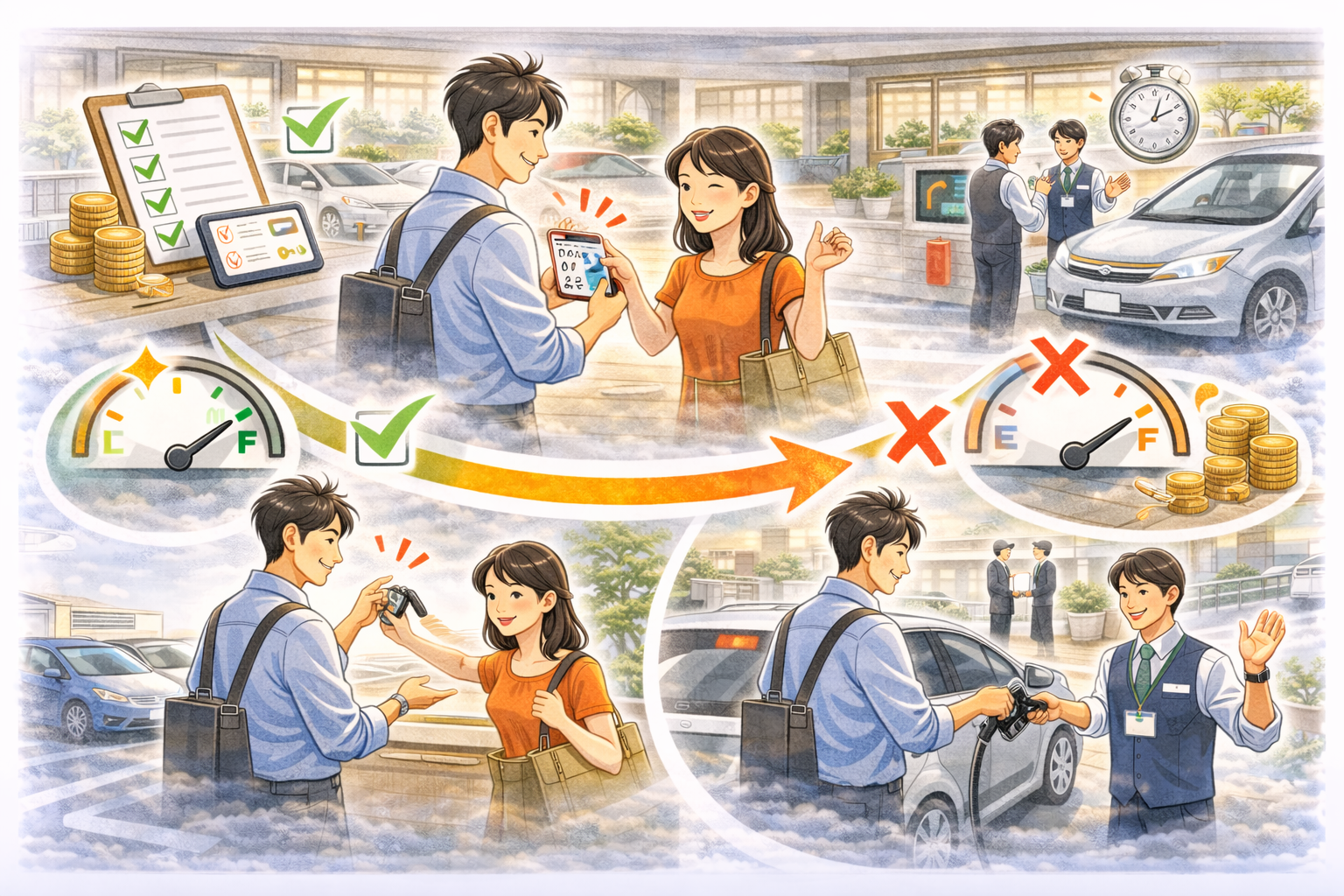 そして返却までを想定した準備をします。ガソリン残量や清掃状況も意識しておきます。