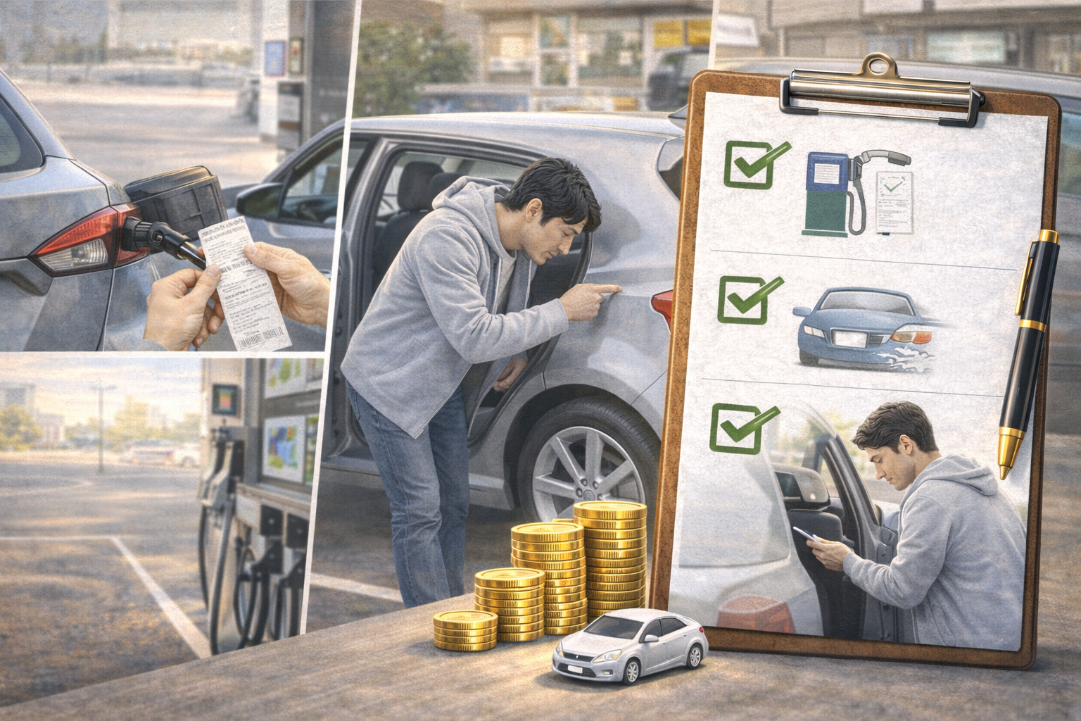 返却前に給油ルールを再確認します。レシート提出が必要な店舗もあります。給油所の指定があるかも確認しておきましょう。