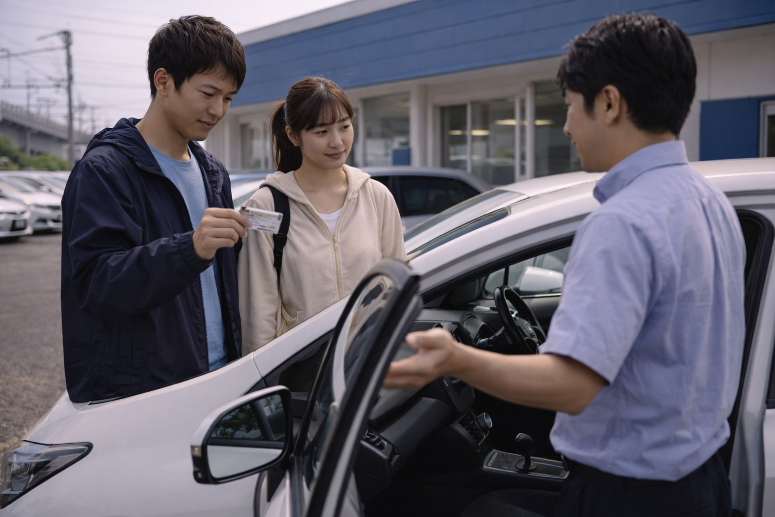 契約が完了すると、車両の案内があります。スタッフと一緒に車の場所へ移動し、車の状態や操作方法について簡単な説明を受けます。傷の確認や装備の説明などもこのタイミングで行われます。