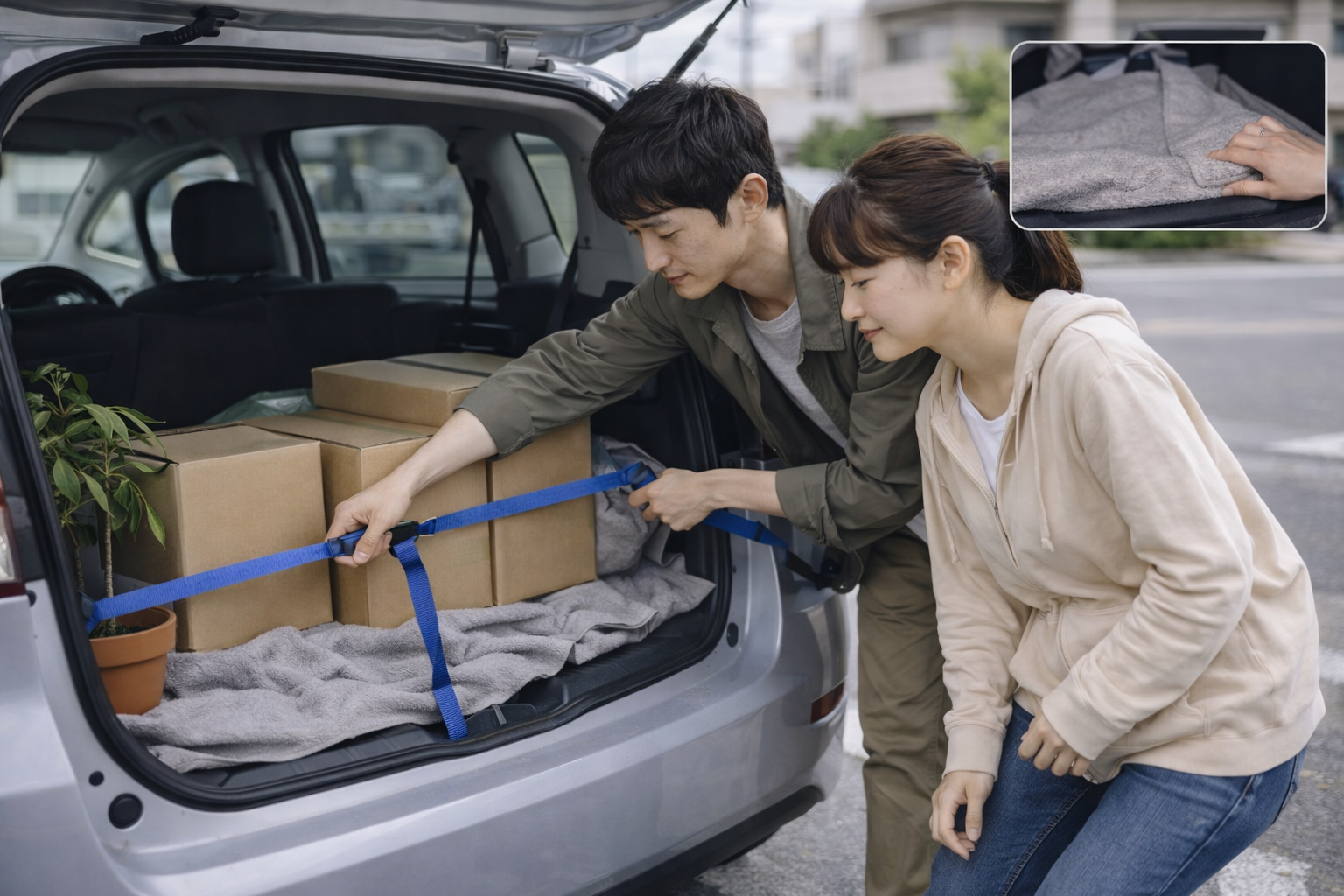こうしたポイントを意識することで、レンタカーを安全に利用することができます。荷物運搬では車内保護と安全な積み方が大切です。