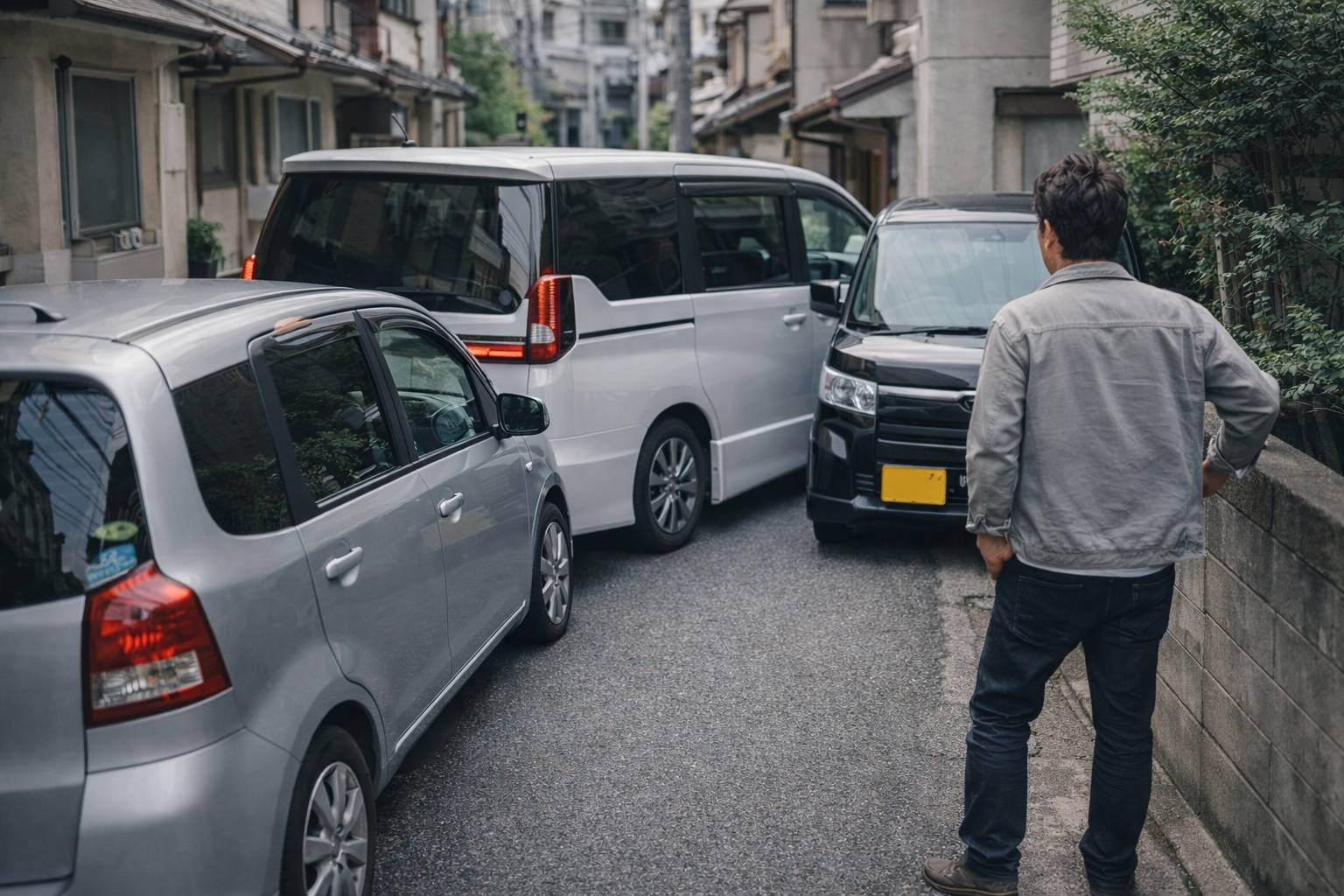 枚方の狭い道で多いのは、「想像以上に余裕がない」というトラブルです。