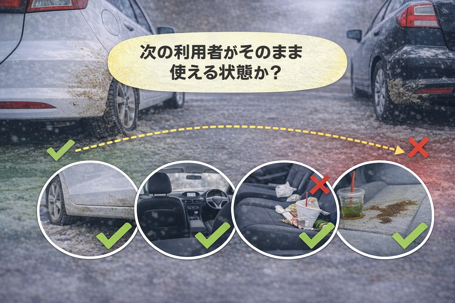 次に、返却前に車内外の状態を確認することです。