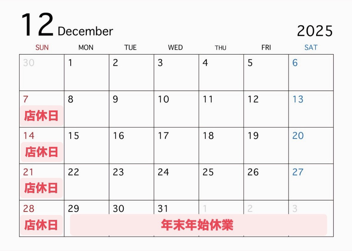 2026年1月5日(月)より通常営業いたします。