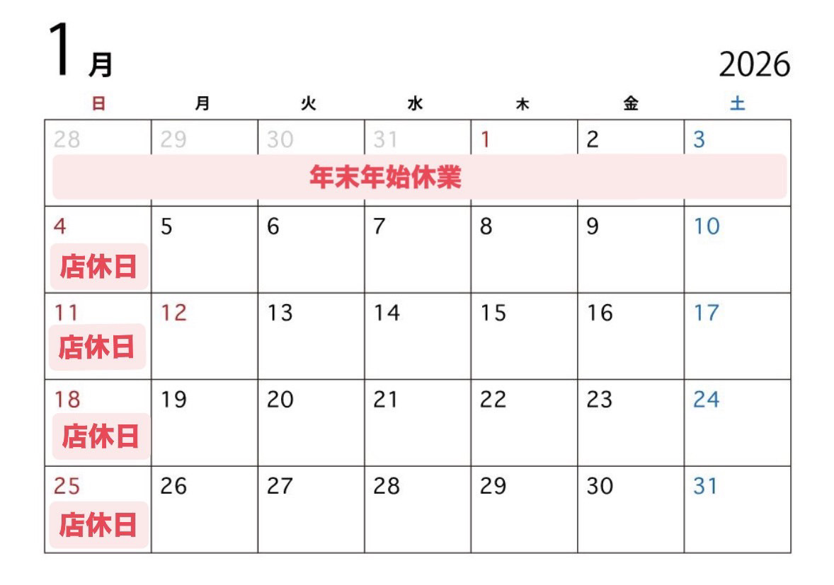 2026年1月5日(月)より通常営業いたします。