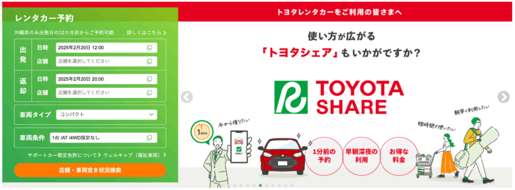 - トヨタレンタカーメンバーは基本料金が最大20%割引