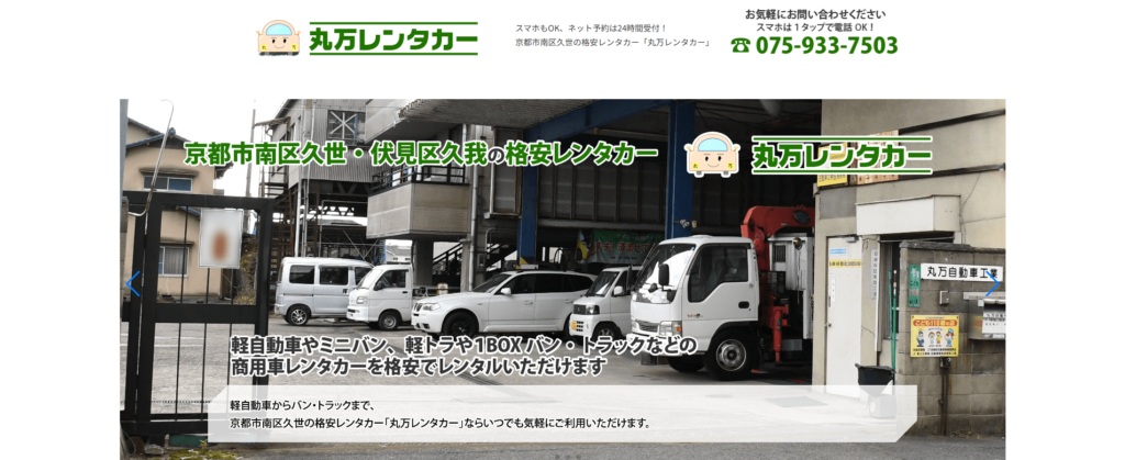 丸万レンタカーは、伏見区久我周辺で地域密着型の格安レンタカーを探している人に向いた店舗です。