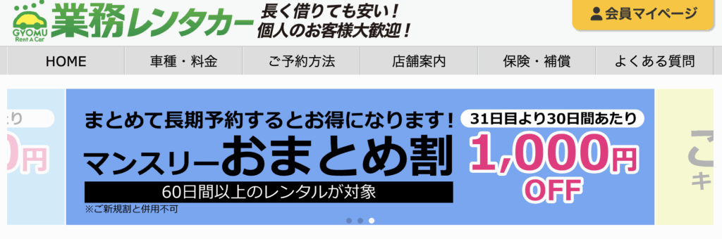 カルノリレンタカーはウィークリー・マンスリー専門の格安レンタカー店です。