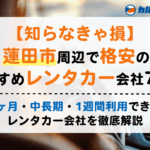 そこでこの記事では、蓮田市(蓮田駅)周辺で格安のおすすめレンタカー会社7選を解説します。また、1ヶ月レンタルの料金目安や、中長期でお得になる理由もあわせて紹介します。この記事では、以下の内容が分かります。