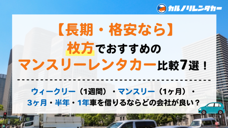 カルノリブログ2026/01/31【長期・格安なら】 枚方でおすすめのマンスリーレンタカー比較7選!ウィークリー(1週間)・マンスリー(1ヶ月)・3ヶ月・半年・1年車を借りるならどの会社が良い?
