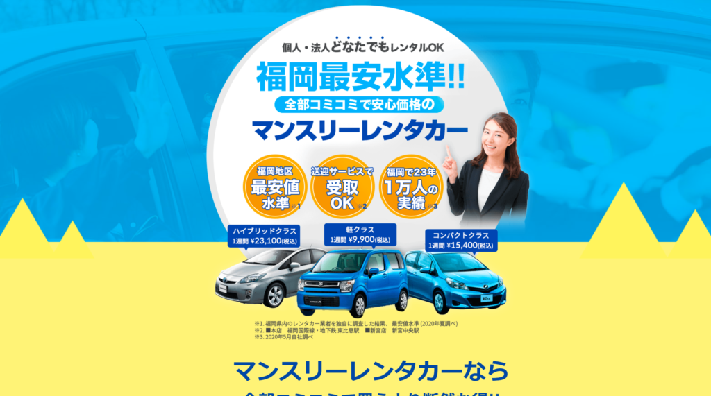 - 福岡空港でおすすめのマンスリー・ウィークリーレンタカー会社