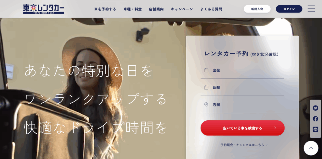 東京レンタカーは、快適なドライブ時間を提供してくれるレンタカー会社です。車はすべて新車の人気車種を利用可能で、これらの車両は3ヶ月に1回点検を実施しているため、いつでも安全に運転できます。