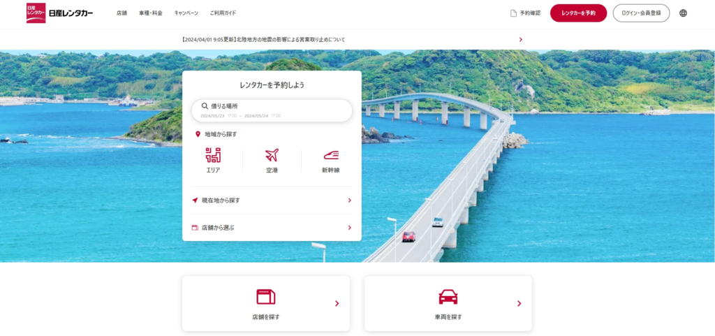 - レンタカーの予約、確認、変更、キャンセルがオンラインで簡単に行える