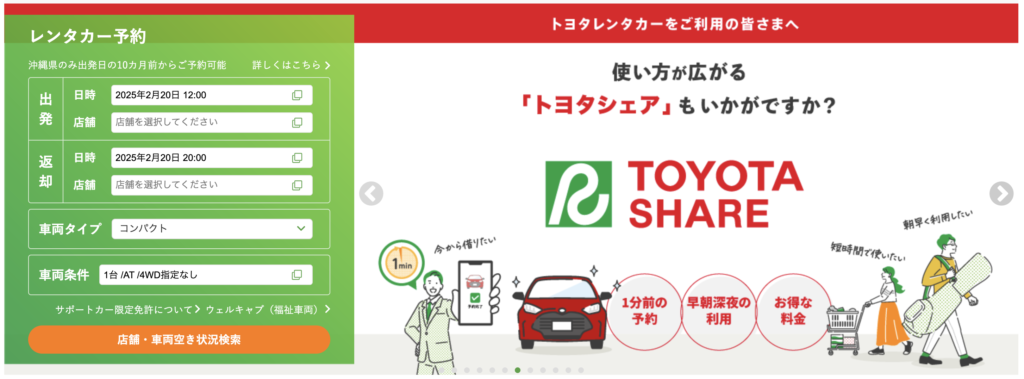 トヨタレンタカーは、3時間からの短時間レンタルや、乗り捨て可能なワンウェイ返却サービスで、お客様の多様なニーズに対応しています。ガソリン代は利用量に応じて精算するため、返却時の手続きもスムーズです。