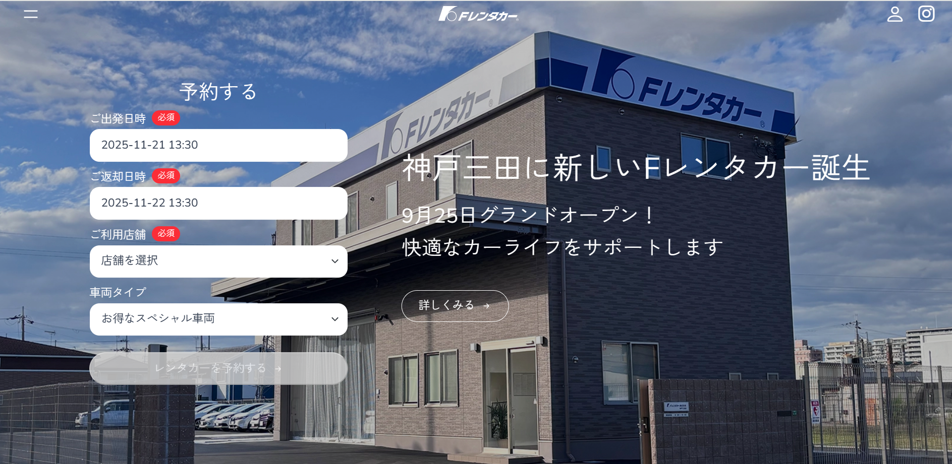 | 取扱車種 | 軽自動車:4人乗り コンパクトカー:4~5人乗り ファミリーカー:7~8人乗り |