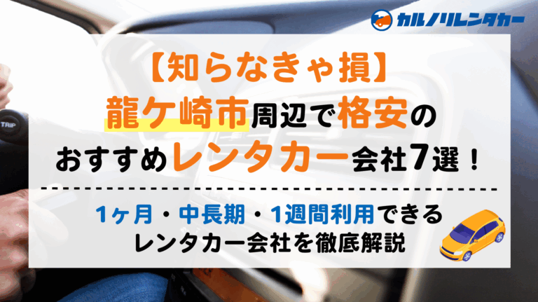 そこでこの記事では、茨城県龍ケ崎市(龍ケ崎市駅)周辺でおすすめの格安レンタカー会社7選を紹介します。
