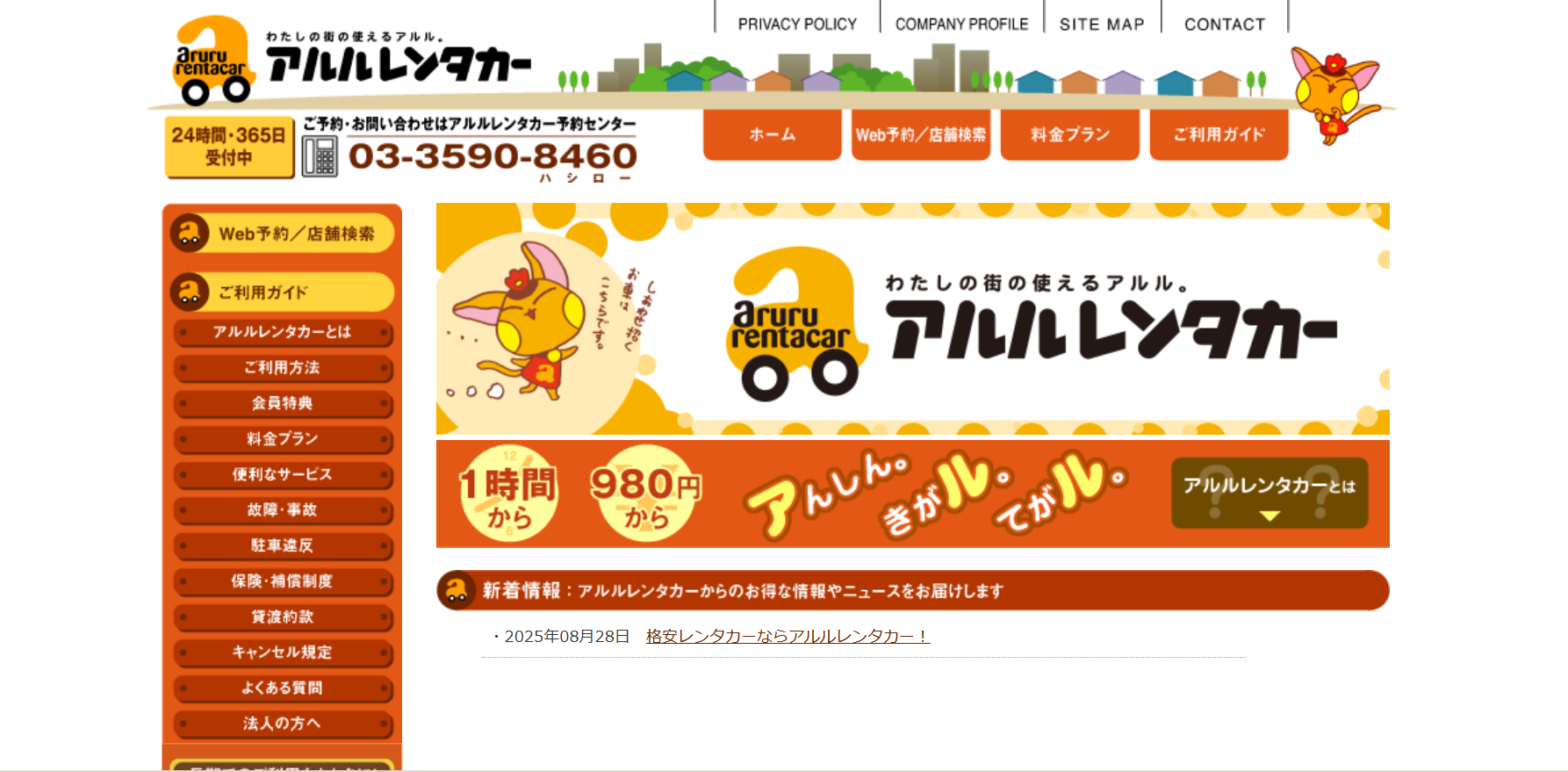 | 取り扱い車種 | 軽自動車:4人乗り コンパクトカー:4~5人乗り ファミリーカー:7~8人乗り |