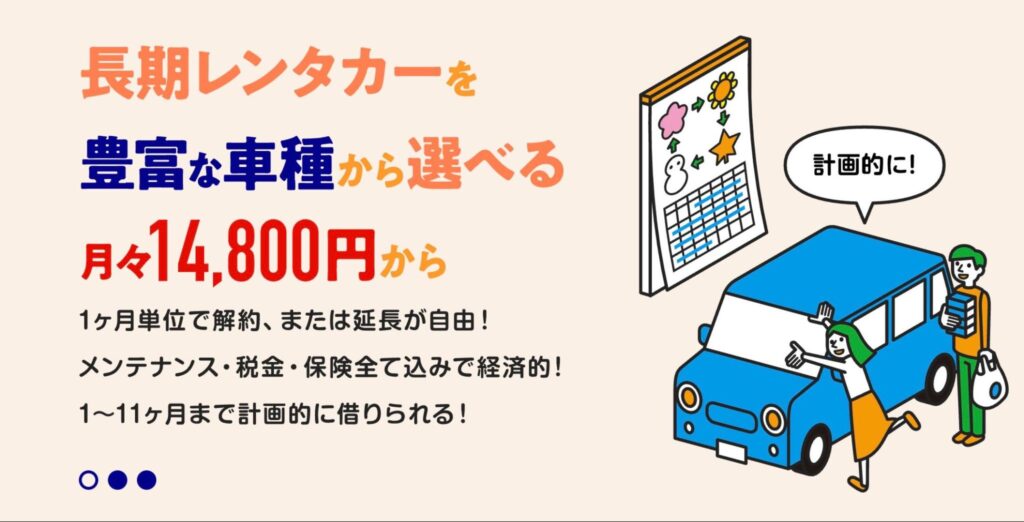 - 最長11ヶ月の長期レンタル専門のレンタカー会社
