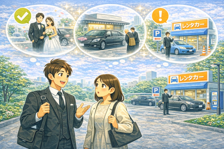 「冠婚葬祭でレンタカーって使っていいの?」そう不安に思ったことはありませんか? 結婚式や葬儀といったフォーマルな場では、普段以上にマナーが気になるものです。特に車の選び方や移動手段については、「失礼にならないか」と悩む方も多いでしょう。 一方で、最近は車を所有していない人も増えており、「必要なときだけレンタカーを使う」という選択が一般的になっています。 結論から言うと、ポイントさえ押さえれば、レン […]
