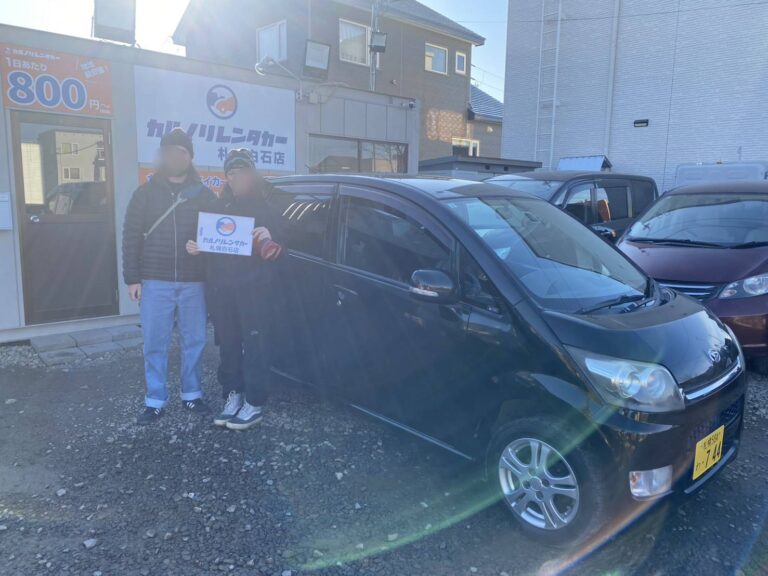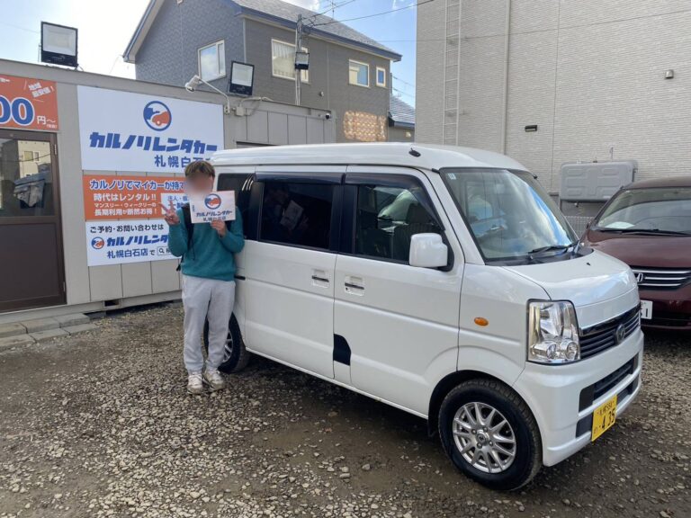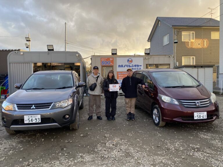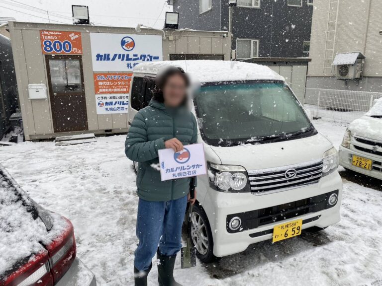 ご利用プラン F1クラスを90日間ご利用中 レンタカー利用用途 北海道旅行 スタッフから一言 記念撮影にもご協力頂き誠にありがとうございます。 当店 カルノリレンタカー札幌白石店 は、帆北海道札幌市白石区を拠点に 格安レンタカー・長期レンタカー・マンスリーレンタカー を幅広くご提供しています。 観光やビジネス、札幌近郊ドライブなど、さまざまなシーンで快適にご利用いただけるよう、全車両を常に点検・清 […]