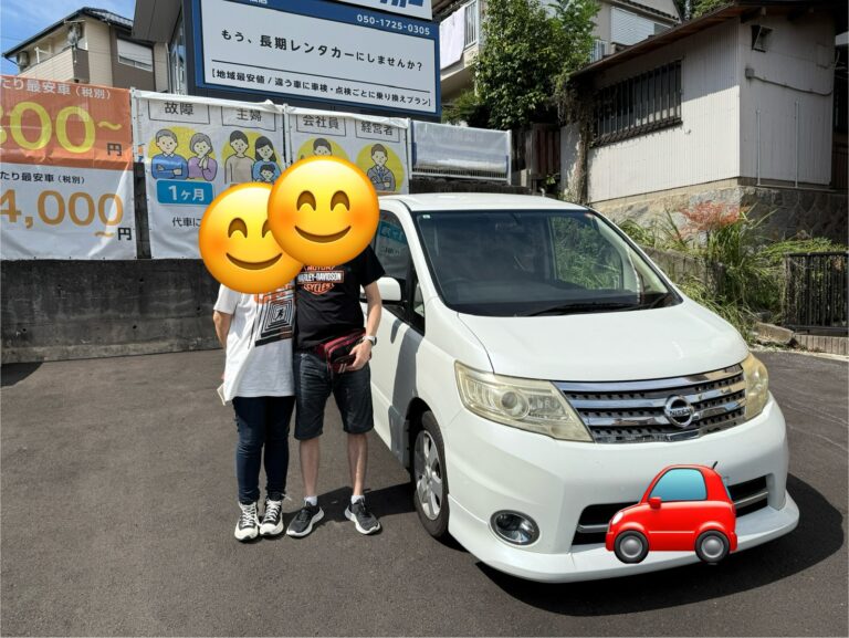 ご利用プラン F1クラス1ヶ月間レンタルプラン お客様のお声 ご説明が分かりやすく、とても良かったです。 また、お車の状態も良く、安心してお借りすることができました。 お兄さんからの接客がとても良かったです。 利用用途 普段使い スタッフから一言 とても素敵な方々M様御一行にレンタカーのご利用いただけて、私たちもとても嬉しいです! 海外から帰省の親戚の方と一緒に過ごされる中、当店のレンタカーをご利 […]