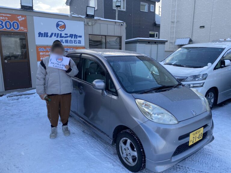 ご利用プラン Cラスを66日間ご利用中 レンタカー利用用途 冬季北海道旅行 スタッフから一言 記念撮影にもご協力頂き誠にありがとうございます。 当店 カルノリレンタカー札幌白石店 は、北海道札幌市白石区を拠点に 格安レンタカー・長期レンタカー・マンスリーレンタカー を幅広くご提供しています。 観光やビジネス、札幌近郊ドライブなど、さまざまなシーンで快適にご利用いただけるよう、全車両を常に点検・清掃 […]